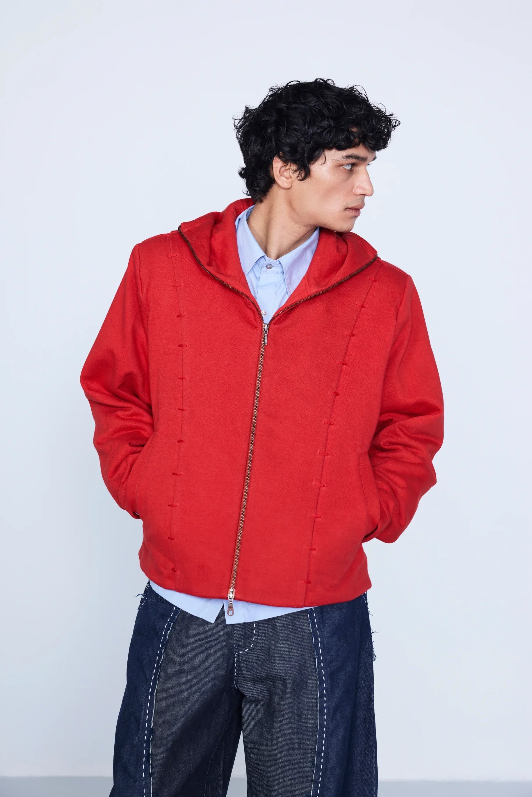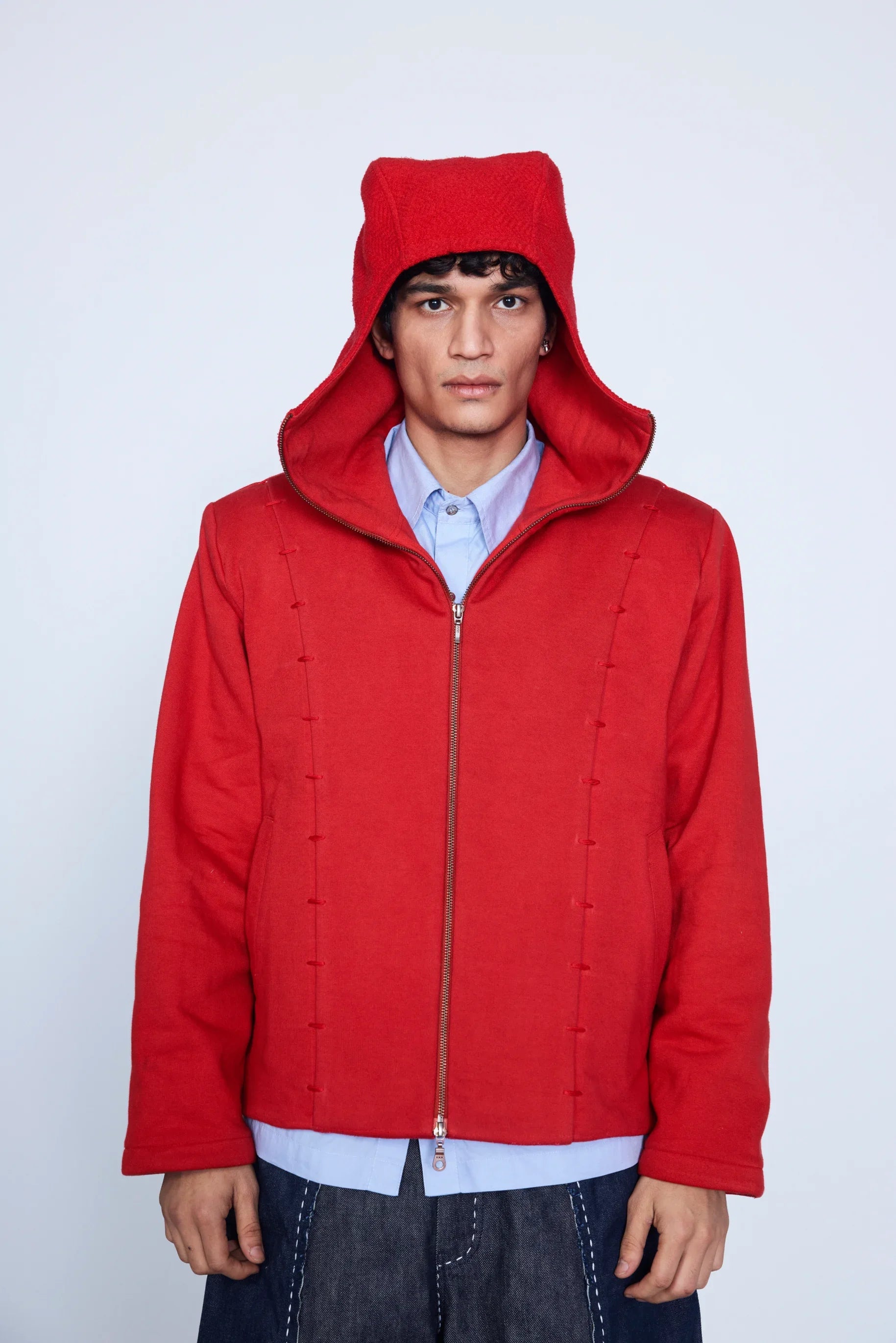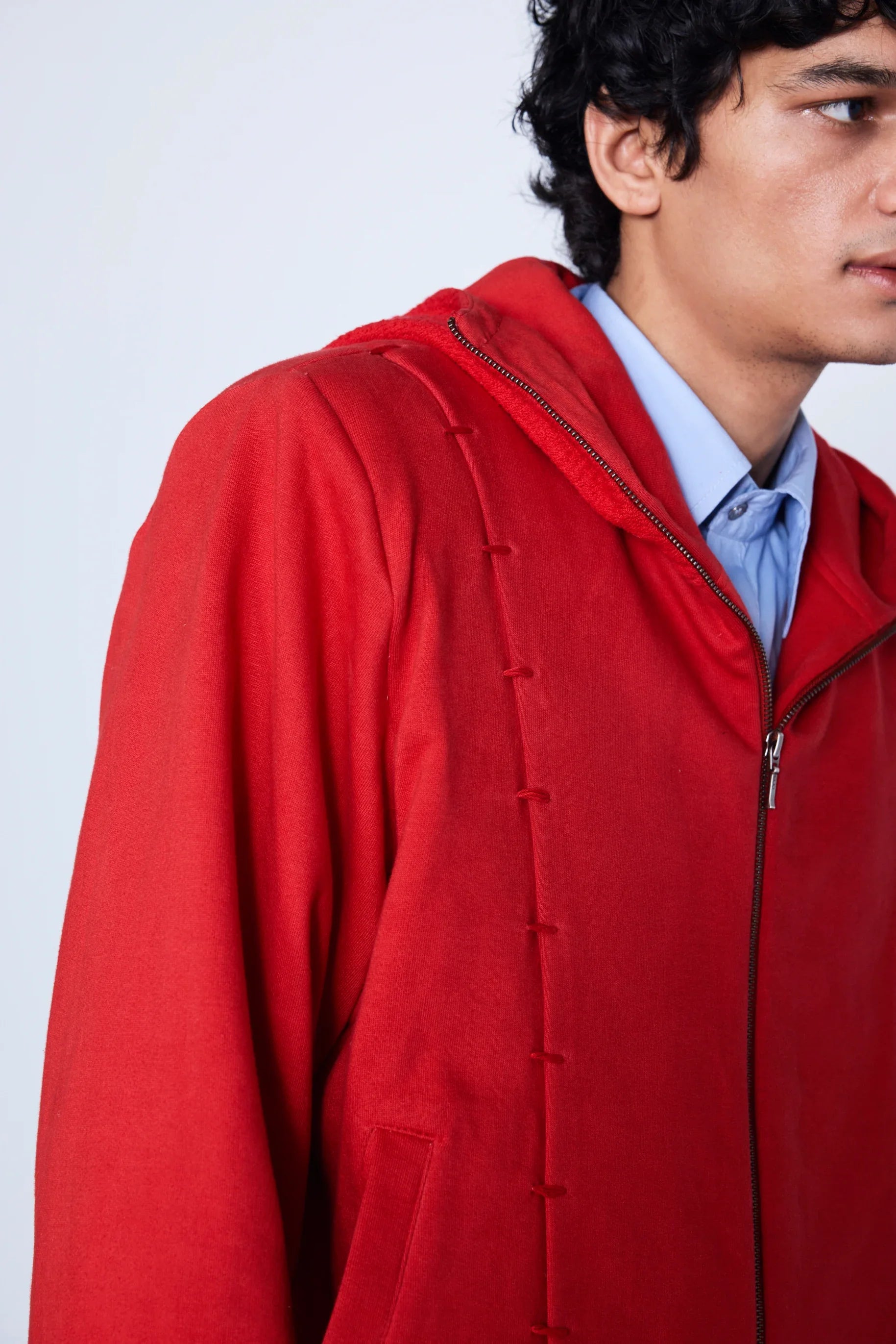 Crafted from 400GSM 100% combed cotton fleece with shoulder pads and a soft cotton lining. It features embroidered lapels and a convertible strap on the back, allowing it to be carried like a bag for added convenience