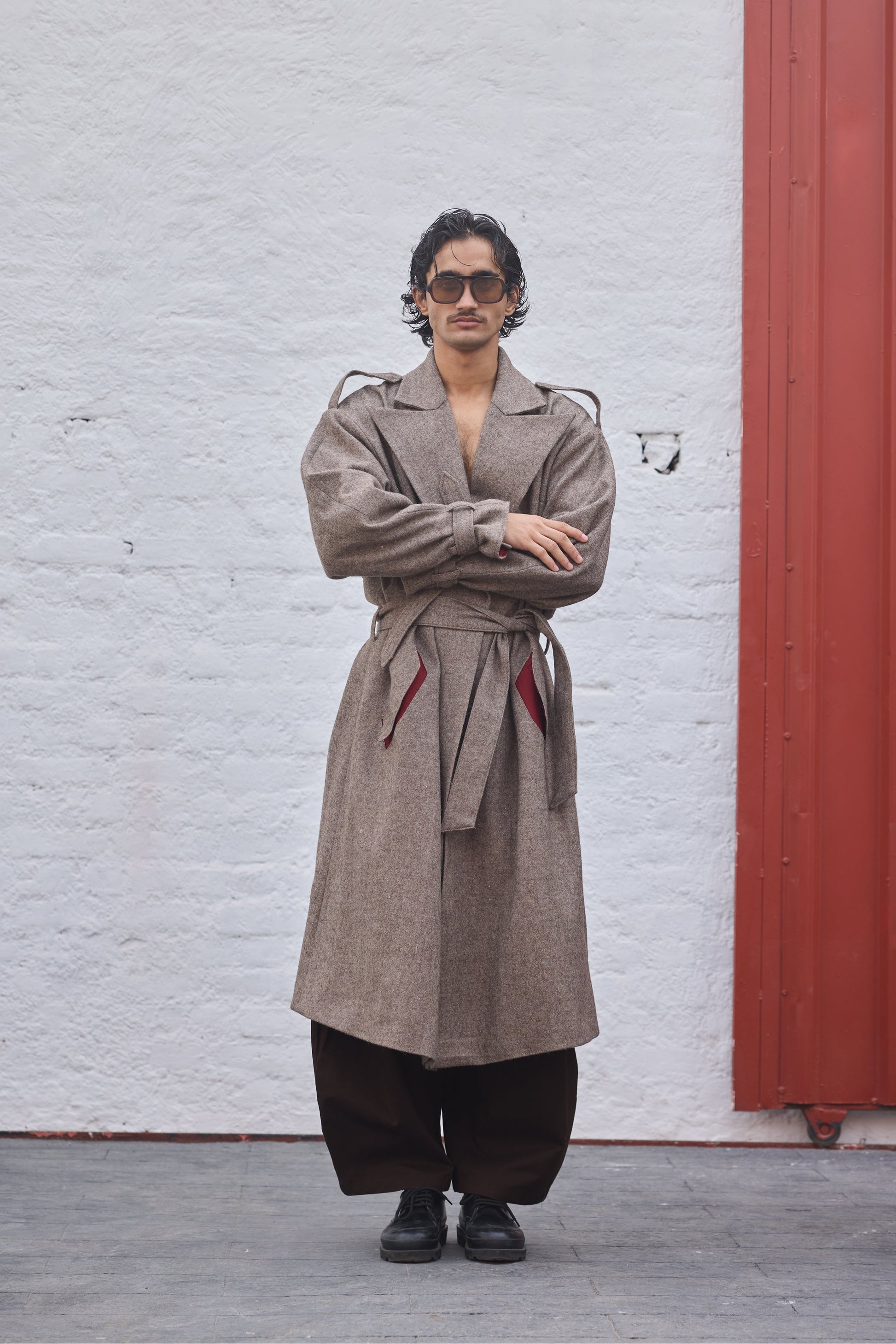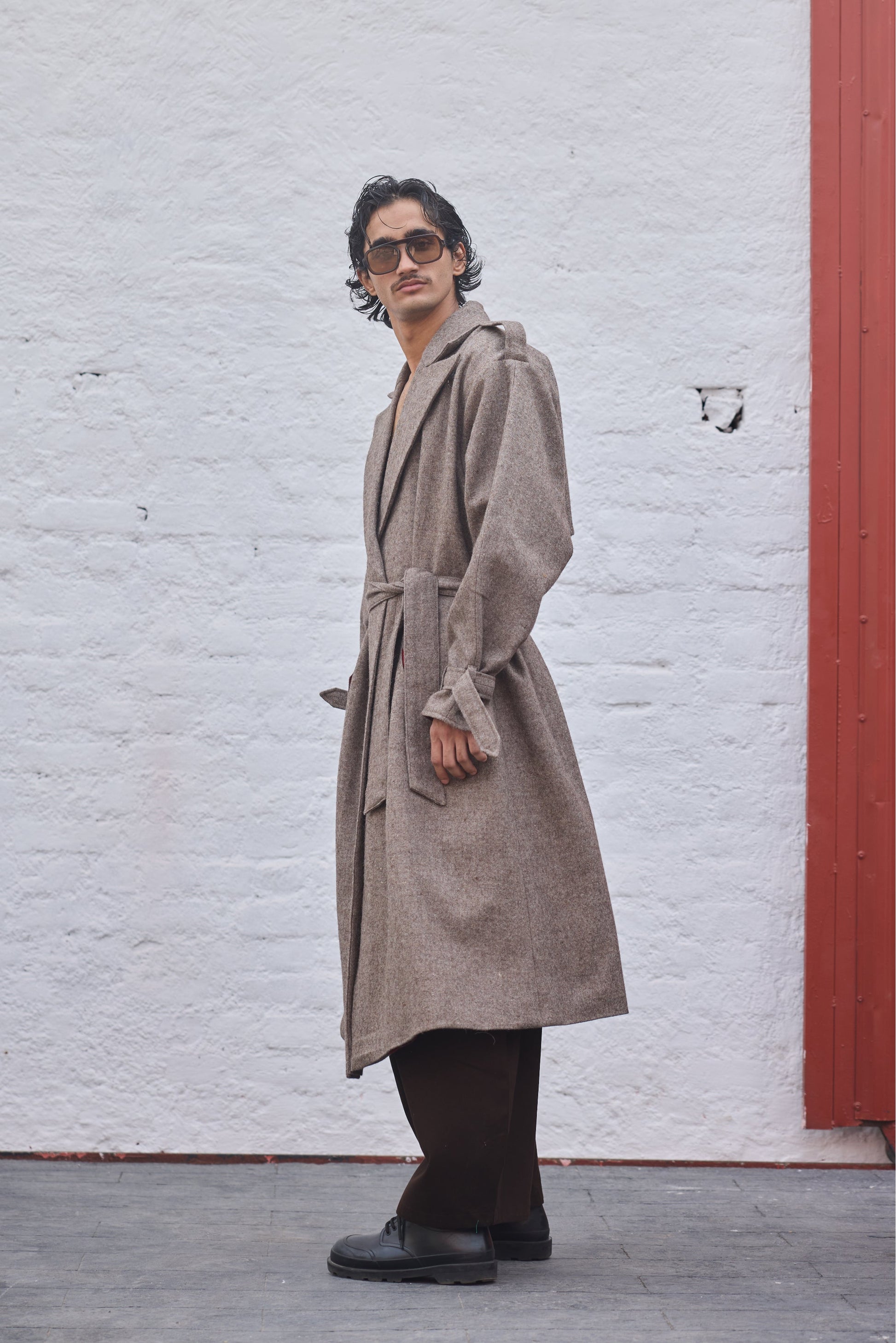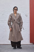breathability. Constructed with internal stitching and topstitch detailing along the lapels, belt, and hem, the piece balances